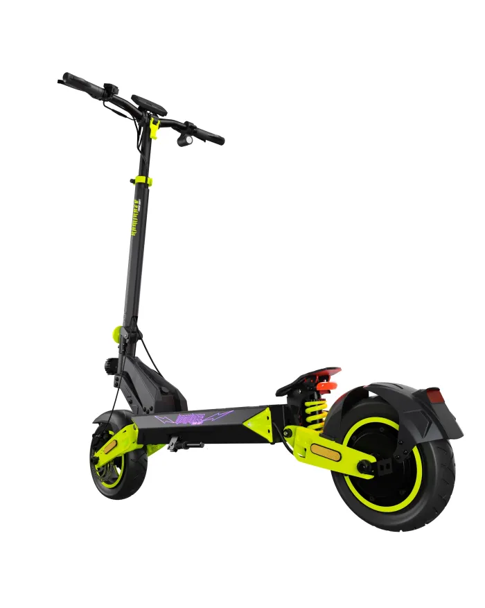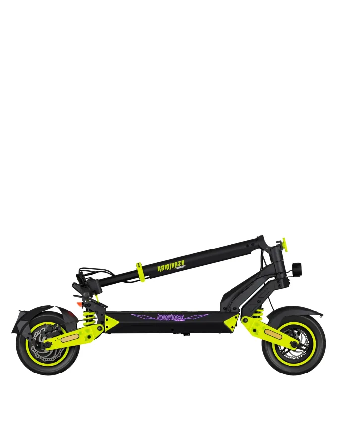 Kamikaze K1 PLUS Tokyo Drift to wygodna hulajnoga, która doskonale sprawdza się zarówno podczas jazdy po mieście, jak i w trudniejszym terenie. Jej unikalny design przyciąga uwagę – wyposażona w efektowne podświetlenie RGB oraz neonowe detale, zapewnia świetną widoczność na drodze. Duże, 11-calowe koła ułatwiają pokonywanie nierówności, a hydrauliczne amortyzatory gwarantują skuteczne i bezpieczne hamowanie dokładnie wtedy, gdy tego potrzebujesz.